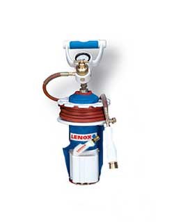 B tanktote sleeve has convenient storage of hose handle tips and other accessories. Gauge guard protects easy read 2 gauge from damage. Hose w/metal strain relief prevents hose kinking at fittings. Handle makes transporting tank easy. Hose wrap storage.Lenox LX800MC "MC" Tank Air Acetylene Kit with AA800 5/16-Inch Self-Igniting Swirl Flame Tip Features